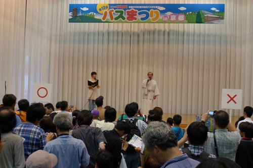私は「スルッと○×クイズ」で3問のクイズを出題させていただきました。クイズを通じて、公共交通のお得さや便利さをご紹介。京都観光は“ぜひ市バス・地下鉄で!”よろしくお願いします。