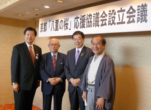 新島八重をはじめ、京都外大を創設された森田 一郎、倭文子 夫妻など、京都と会津若松には多くのご縁があり、今年3月、本市と会津若松市とで「相互交流宣言」を行いました。先人たちが紡いできたご縁を大切にしながら、両市の更なる活性化につなげていきたいと考えています。 本日、京都府、京都商工会議所をはじめとするオール京都体制で「京都『八重の桜』応援協議会」を設立。会長には、京都會津会会長を務められる京都外大 森田 嘉一 総長にご就任いただきました。また、オブザーバーとして室井 照平 会津若松市長にもご出席いただきました。お忙しい中、ご出席いただいた皆さんに感謝。
