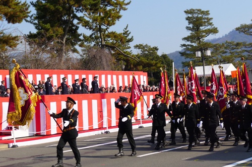 新春の澄んだ空気の中、武田 俊彦 消防庁審議官をはじめ、山田知事、安田京都府警察本部長、橋村市会議長、隠塚副議長など、多数の来賓の皆さんがご臨席。多くの市民の方々もご参加いただき沿道からは温かい拍手も。改めて感動的な出初式でした。