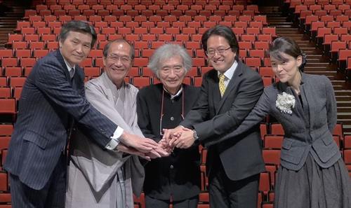 世界の小澤 征爾先生の指揮によるオペラが、ロームシアター京都オープニング事業としての公演が決定。そして、全国ツアーが始まります。小澤先生がロームシアター京都で公演することの意義や魅力を熱く語られました。小澤先生、ローム澤村 諭 社長、村上 寿昭 指揮者、小澤 征良さんと私で記者会見。