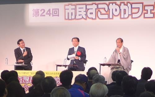 本日は、キックオフイベントとして、中山 健夫 京都市民健康づくり推進会議議長と、健康づくりについてトークセッション。更に、山科健康づくりサポーター「キャットハンズ」の皆さんとロコモ予防体操を実践。「健康寿命」を「平均寿命」に限りなく近づけるため、引き続き、健康づくりの行動の輪を広げる取組を推進します。