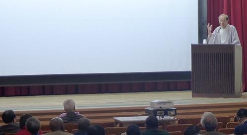 市民の皆さんと会議出席者の皆さんに「まちづくりは人づくりから」をテーマに講演。