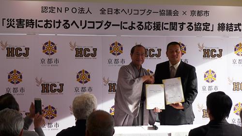 災害時における民間ヘリコプターを活用した情報収集や物資、人員の輸送を迅速に行うため全日本ヘリコプター協議会と京都市で協定を締結。