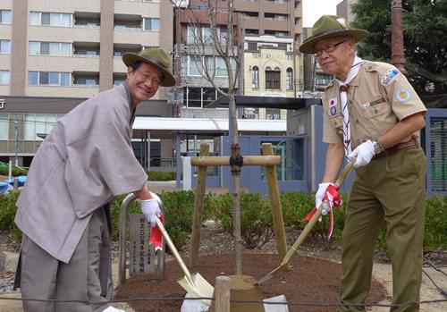 【日本ボーイスカウト京都連盟から100周年記念植樹 @市役所前広場】