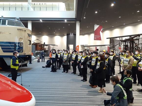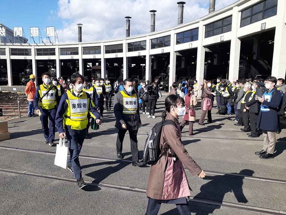 今日は、本年8月に新たに帰宅困難者対策の協定を締結した京都鉄道博物館、ホテルエミオン京都、梅小路ポテル、京都梅小路花伝抄の4施設で初めて訓練を実施。