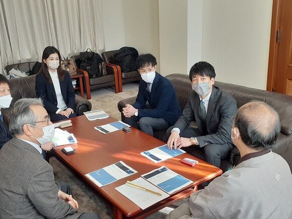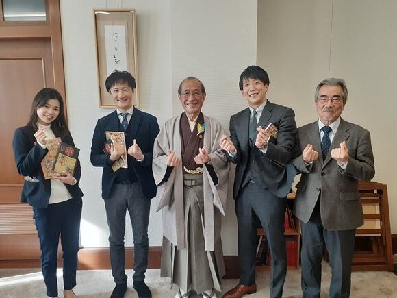 (株)NTTデータ 長谷部旭陽 課長、神野恭平 課長代理、野元日菜さんがお越しに。先月、韓国・安東市で開催された世界歴史都市会議での長谷部課長の文化遺産のデジタルアーカイブ化やメタバースの取り組みについてのプレゼンを現場で拝聴し感銘!早速ご挨拶にお越しくださいました。深謝。