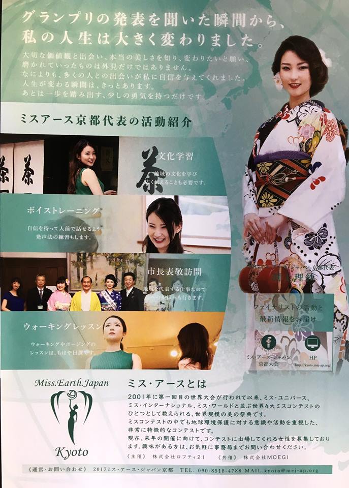 ミス・アース・ジャパン京都大会グランプリ 渕上理紗さんのお披露目会。全国大会でのご活躍を祈念し激励!全てボランティアでご運営、小川智弘氏、佐佐木敦巳氏、山田悟郎氏らに敬意。